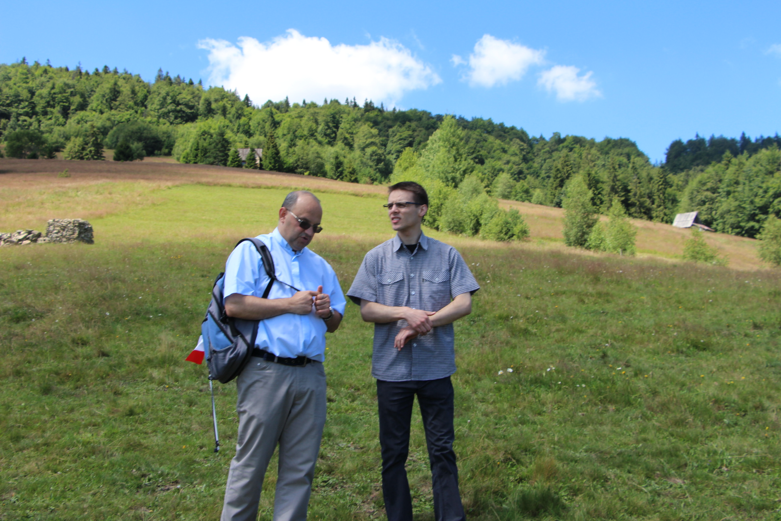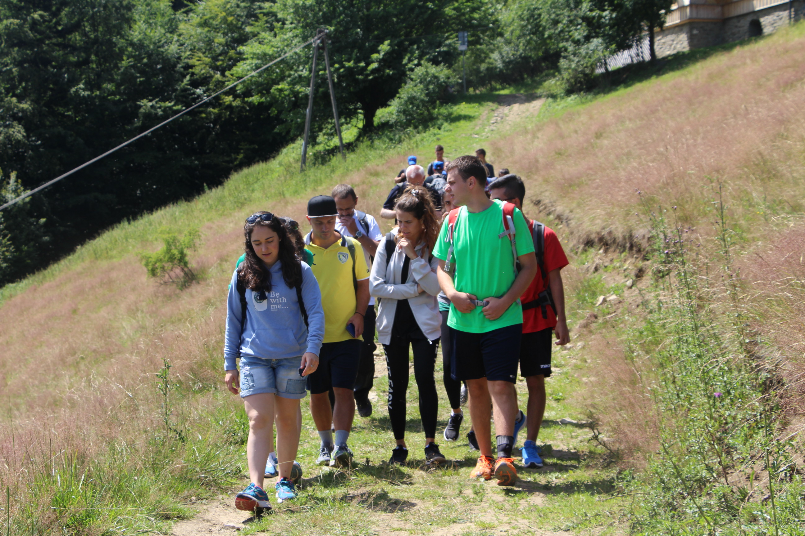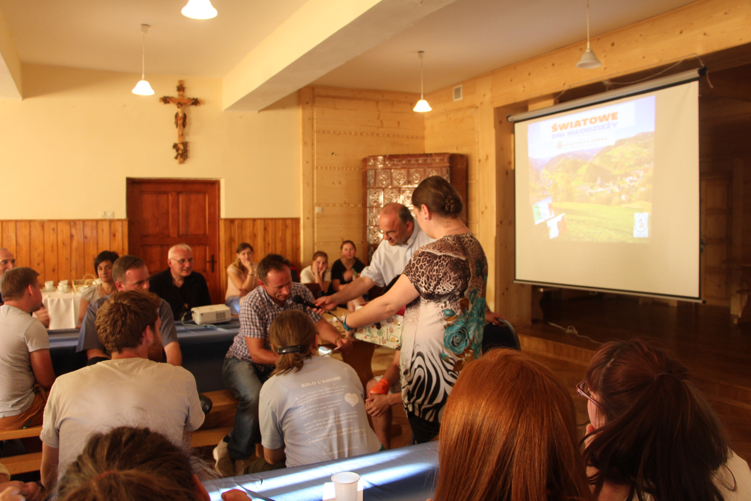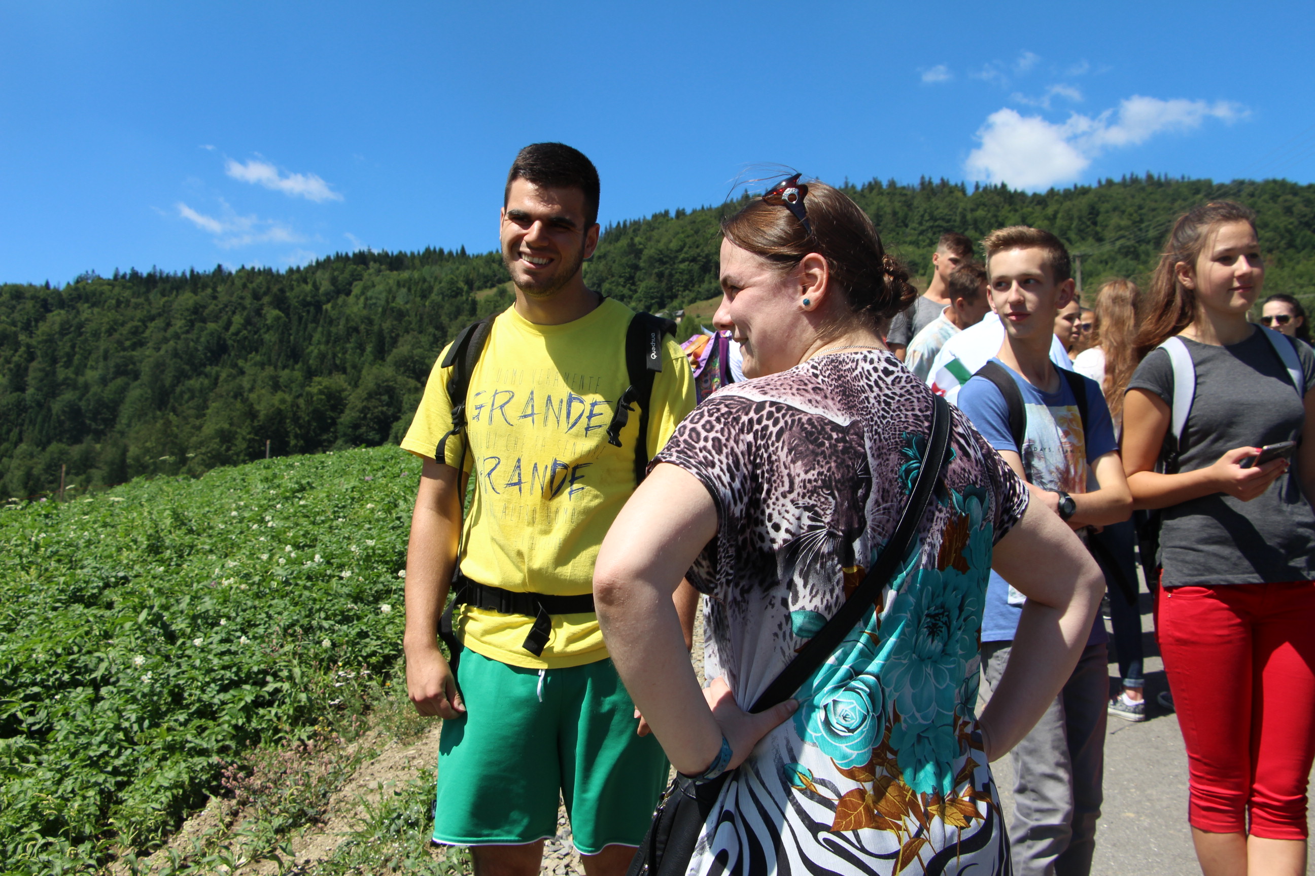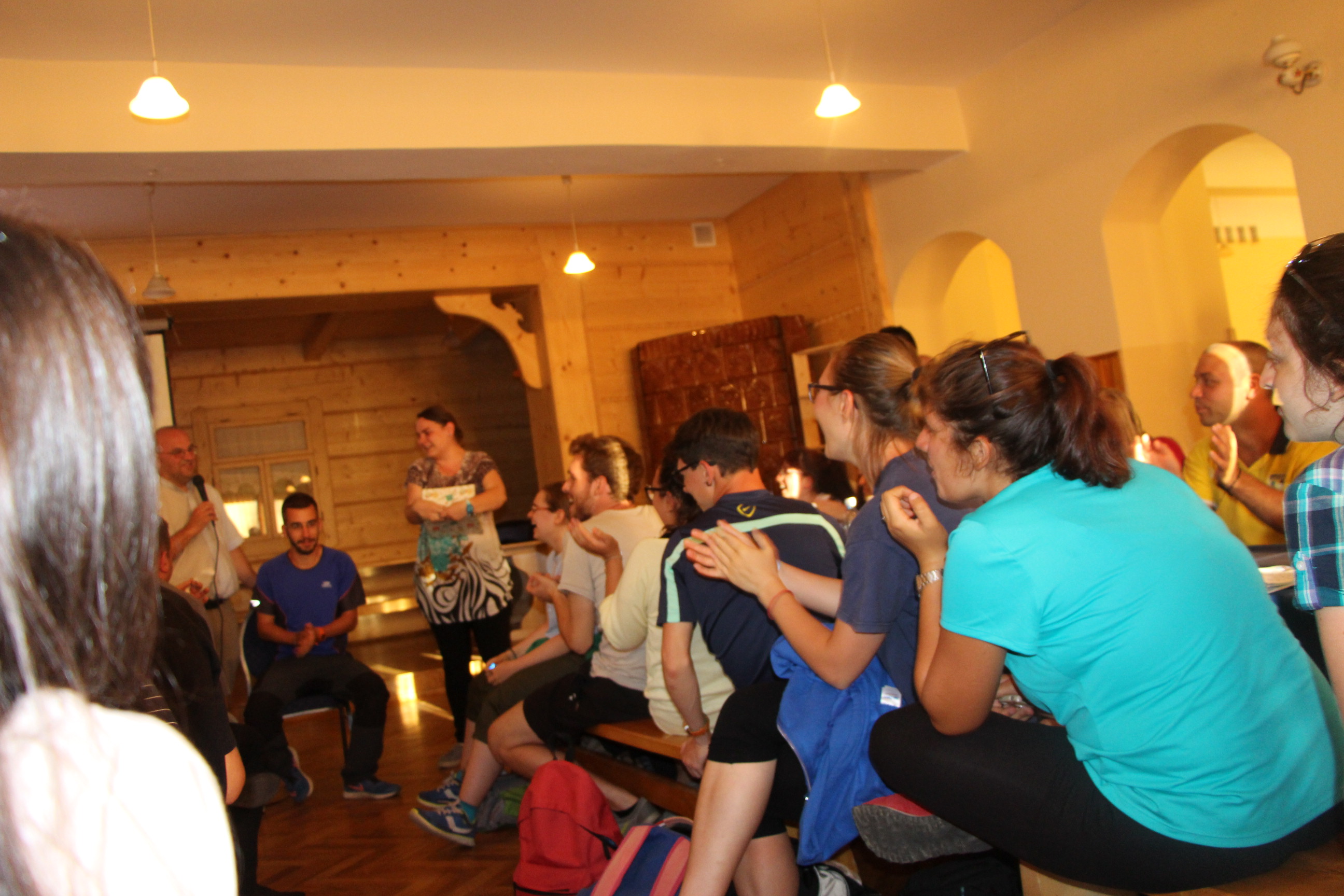 Wraz z grupą z Ochotnicy Dolnej przeżyliśmy czwartek 21.07. jako dzień turystyczny. Rozpoczęliśmy go w  kaplicy w Jamnem od polsko-włoskiej Mszy świętej,  którą koncelebrowali dwaj włoscy księża, ksiądz proboszcz Stanisław Kowalik i wikariusze: ks. Paweł Kita i ks. Paweł Łebski. W czasie liturgii nie zabrakło śpiewów przygotowanych przez naszą scholę,  gości z Włoch i p. Ludwika Czajkę. Następnie pieszo udaliśmy się na Skałkę, by na własnych nogach podążać szlakiem Jana Pawła II, który przed 60. laty gościł w Ochotnicy na obozie narciarskim. Wyprawie do Wojtyłowej Gazdówki przewodniczył p. Zdzisław Błachut, który oprowadził wszystkich po wnętrzu i zapoznał z historią miejsca. Następnie przeszliśmy pod bacówkę u Jarka Buczka, który wraz z żoną przygotował dla nas gościnne przyjęcie i poczęstunek złożony z regionalnych wyrobów. Była to też okazja do poznania specyfiki pracy na bacówce i przyjrzenia się z bliska hodowli owiec. Mimo wielu wrażeń, młodzieży nie brakowało energii do wspólnej zabawy na świeżym powietrzu, a całości towarzyszyła góralska muzyka w wykonaniu p. Ludwika. Nieoceniona okazała się także pomoc  p. Janiny i p. Leszka którzy niestrudzenie towarzyszyli nam w każdej wyprawie jako tłumacze. Po trudach wędrowania zeszliśmy do centrum, gdzie w Wiejskim Ośrodku Kultury czekało nas zwiedzanie – pod okiem kierownika – muzeum regionalnego i lotniczego.  Sprawdziliśmy też swoją wiedzę w quizie polsko-włoskim przygotowanym przez p. Teresę i młodzież. Drobne nagrody i zabawne odpowiedzi wywołały mnóstwo radości. Po poczęstunku przygotowanym w WOK-u wraz z KGW, młodzież dała się porwać do wspólnej zabawy przy tańcach integracyjnych i muzyce zespołu Halni. Nie zabrakło także czasu na modlitwę i zapoznanie się  z sylwetkami polskich świętych i błogosławionych.