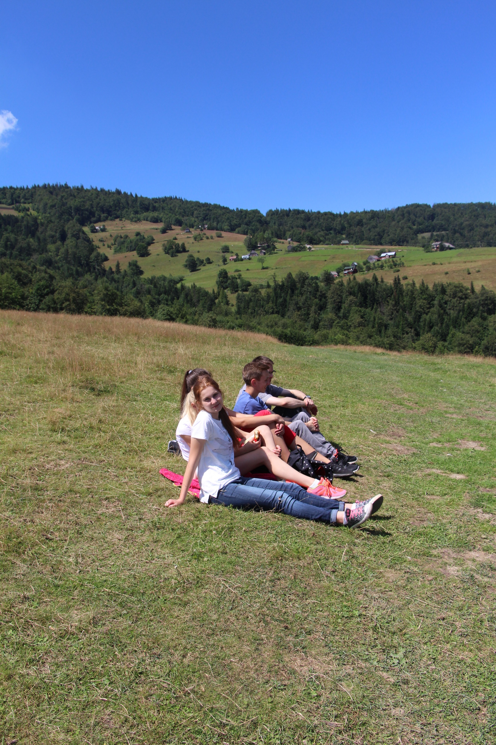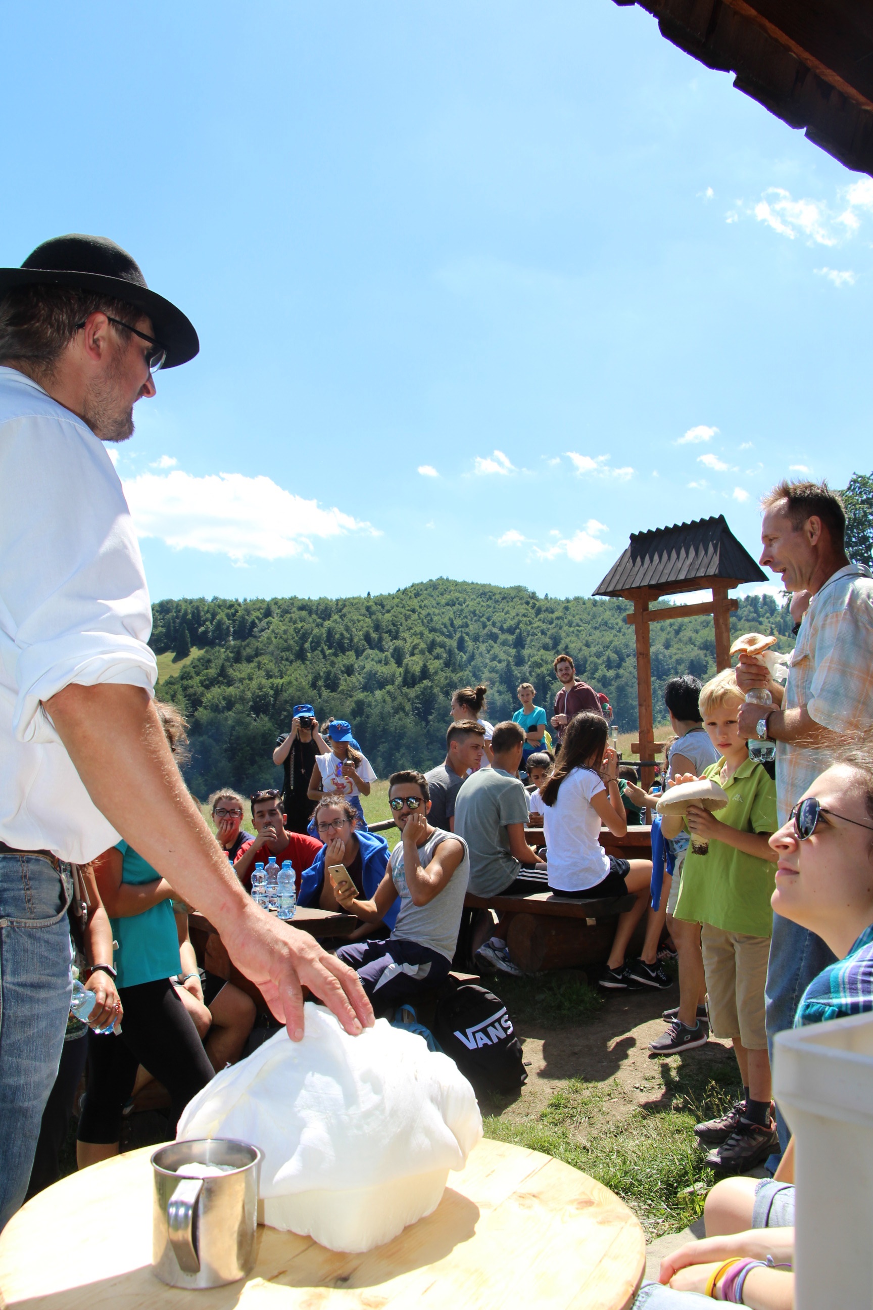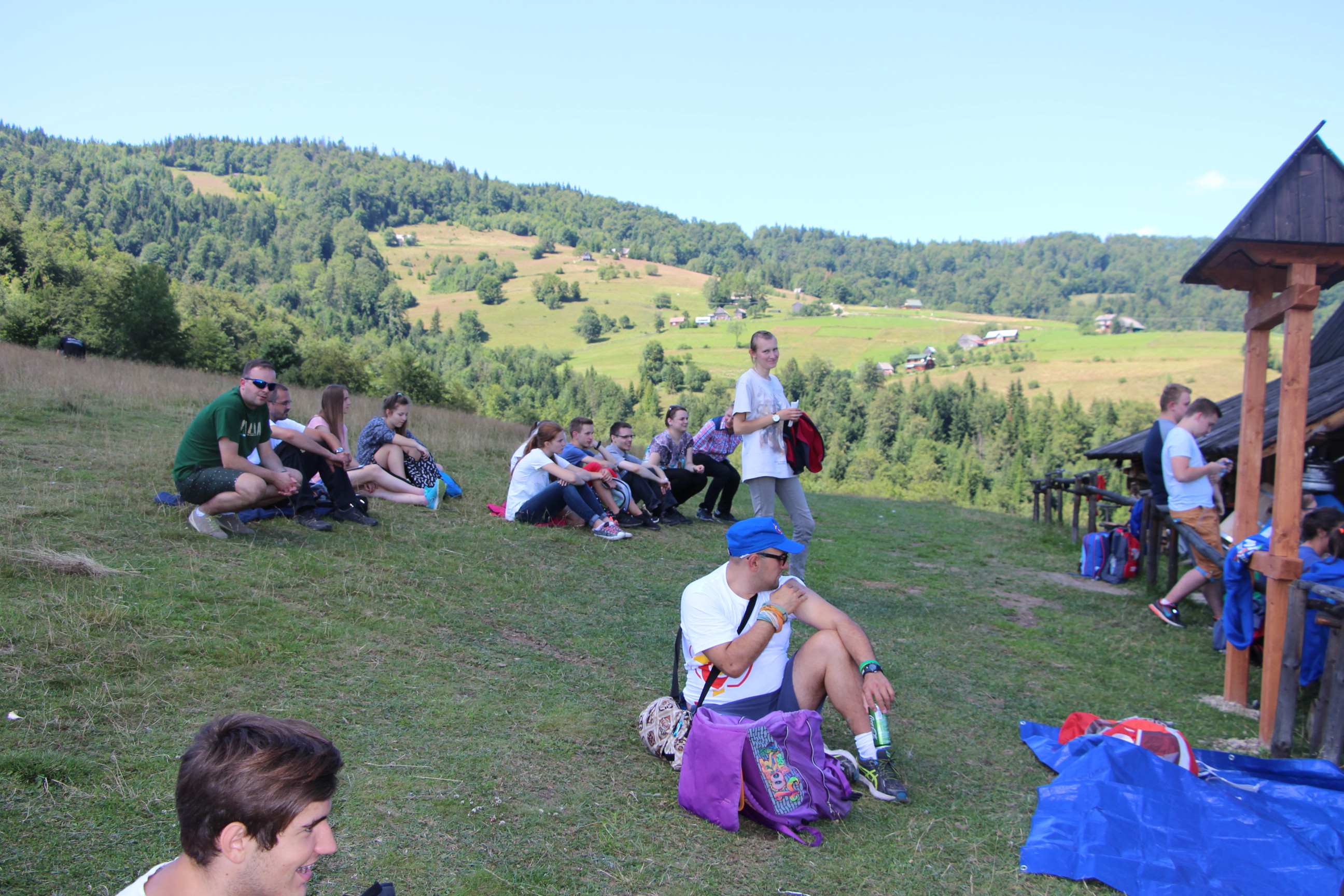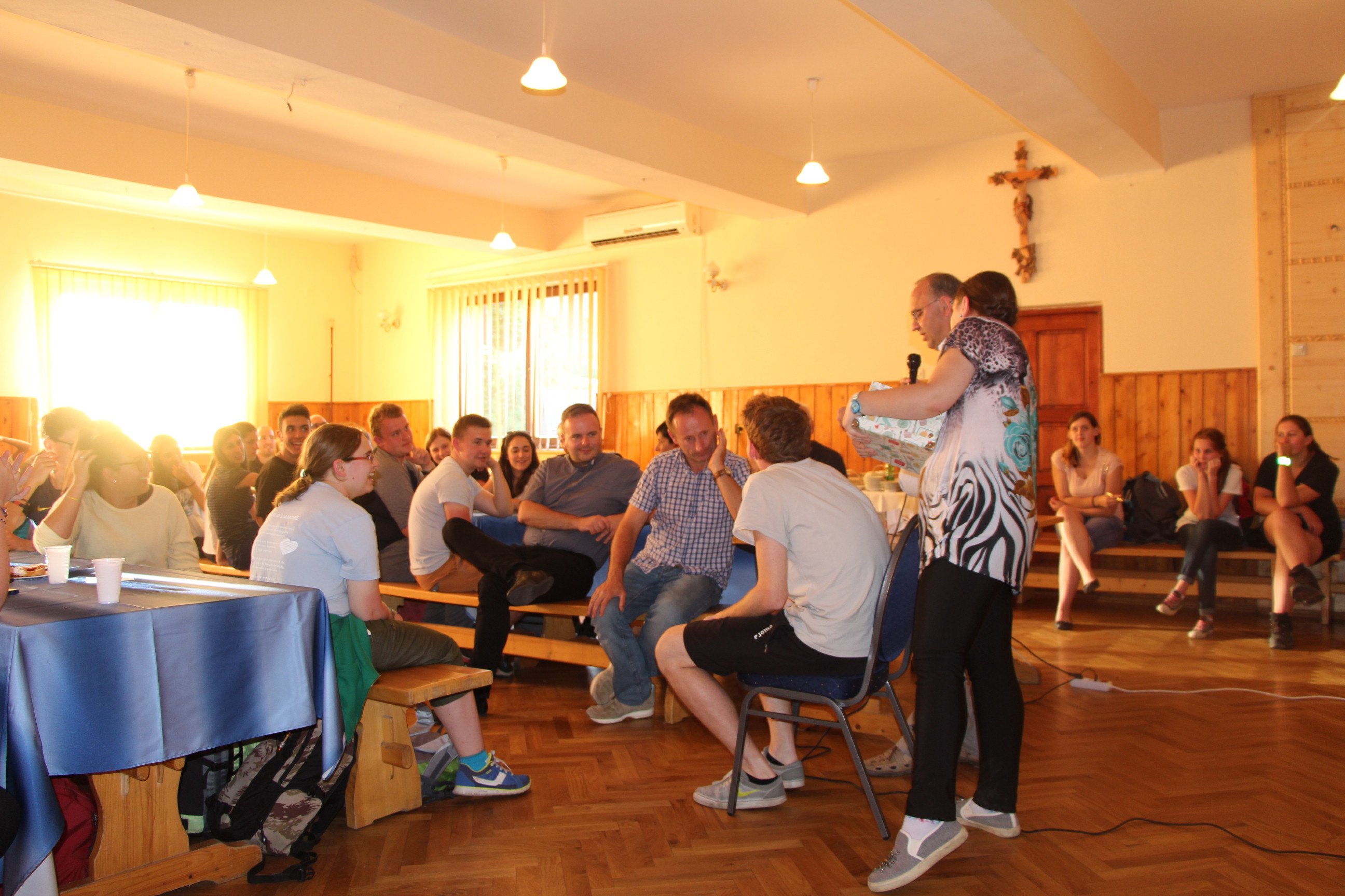 Wraz z grupą z Ochotnicy Dolnej przeżyliśmy czwartek 21.07. jako dzień turystyczny. Rozpoczęliśmy go w  kaplicy w Jamnem od polsko-włoskiej Mszy świętej,  którą koncelebrowali dwaj włoscy księża, ksiądz proboszcz Stanisław Kowalik i wikariusze: ks. Paweł Kita i ks. Paweł Łebski. W czasie liturgii nie zabrakło śpiewów przygotowanych przez naszą scholę,  gości z Włoch i p. Ludwika Czajkę. Następnie pieszo udaliśmy się na Skałkę, by na własnych nogach podążać szlakiem Jana Pawła II, który przed 60. laty gościł w Ochotnicy na obozie narciarskim. Wyprawie do Wojtyłowej Gazdówki przewodniczył p. Zdzisław Błachut, który oprowadził wszystkich po wnętrzu i zapoznał z historią miejsca. Następnie przeszliśmy pod bacówkę u Jarka Buczka, który wraz z żoną przygotował dla nas gościnne przyjęcie i poczęstunek złożony z regionalnych wyrobów. Była to też okazja do poznania specyfiki pracy na bacówce i przyjrzenia się z bliska hodowli owiec. Mimo wielu wrażeń, młodzieży nie brakowało energii do wspólnej zabawy na świeżym powietrzu, a całości towarzyszyła góralska muzyka w wykonaniu p. Ludwika. Nieoceniona okazała się także pomoc  p. Janiny i p. Leszka którzy niestrudzenie towarzyszyli nam w każdej wyprawie jako tłumacze. Po trudach wędrowania zeszliśmy do centrum, gdzie w Wiejskim Ośrodku Kultury czekało nas zwiedzanie – pod okiem kierownika – muzeum regionalnego i lotniczego.  Sprawdziliśmy też swoją wiedzę w quizie polsko-włoskim przygotowanym przez p. Teresę i młodzież. Drobne nagrody i zabawne odpowiedzi wywołały mnóstwo radości. Po poczęstunku przygotowanym w WOK-u wraz z KGW, młodzież dała się porwać do wspólnej zabawy przy tańcach integracyjnych i muzyce zespołu Halni. Nie zabrakło także czasu na modlitwę i zapoznanie się  z sylwetkami polskich świętych i błogosławionych.